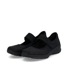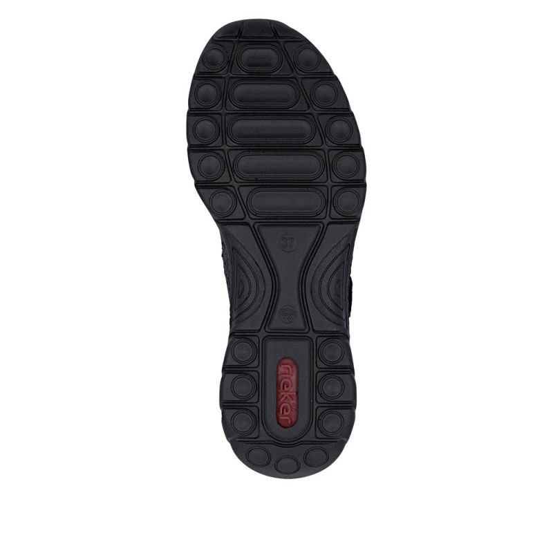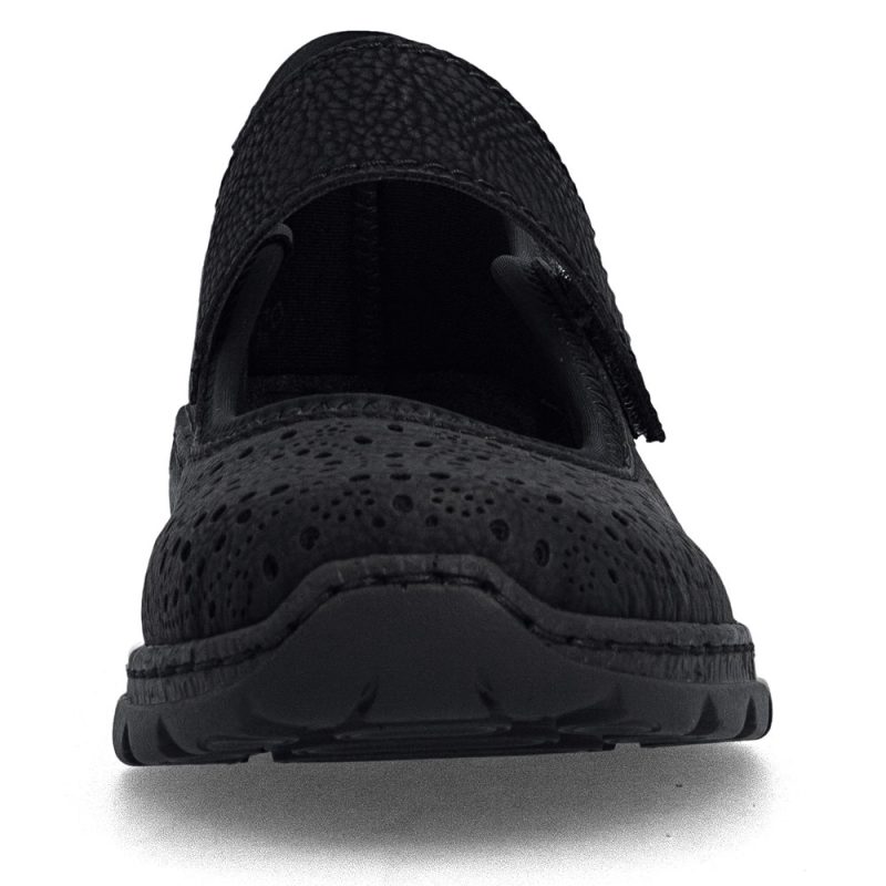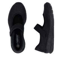 Omogućite svojim stopalima maksimalnu udobnost u šarmantnom dizajnu ovih RIEKER baletanki. Gornji deo crne boje je elegantno ukrašen perforacijom i logotipom brenda, koji cipelama dodaje stilski štih. Kaiš preko boka je opremljen čičak kopčom, što omogućava lako stavljanje i podešavanje prema potrebama svakog od vas. Uložak koji se može skinuti pružiće vam ugodan osećaj svojom mekoćom, viši đon efikasno apsorbuje udarce pri hodanju i pruža bolju stabilnost. Odličan izbor za žene koje traže elegantne i udobne cipele.