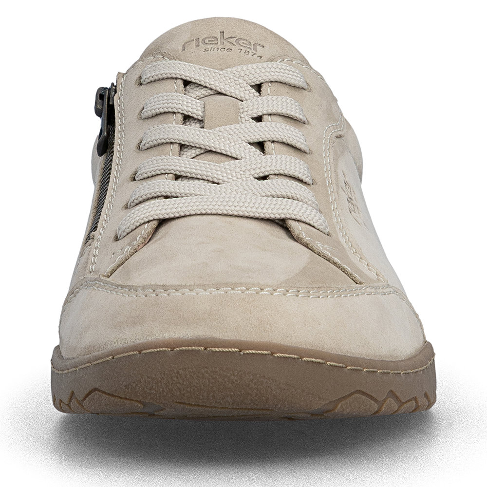 Kožni klasici za mušku garderobu – RIEKER cipele kombinuju bezvremenski dizajn, kvalitet i maksimalnu udobnost. Gornji deo od bež kože izgleda univerzalno i upotpunjen je finim linijama šavova koje ističu preciznu izradu i daju cipelama moderan karakter. Pertle zajedno sa praktičnim patentnim zatvaračem na gornjem delu stopala omogućavaju lako obuvanje i precizno prilagođavanje obliku stopala. Uklonjivi mekani uložak i širi kroj cipela obezbeđuju izuzetnu udobnost pri svakom koraku, a njihov anatomski oblik podržava prirodno kretanje stopala. Svakodnevno nošenje je prijatnije zahvaljujući laganom i fleksibilnom đonu sa RIEKER Antistres tehnologijom, koji pouzdano apsorbuje udarce i smanjuje zamor stopala čak i nakon dužeg nošenja. Ove cipele su idealan izbor za muškarce koji preferiraju kombinaciju bezvremenskog izgleda i moderne udobnosti – bilo da su za posao ili svakodnevno nošenje.