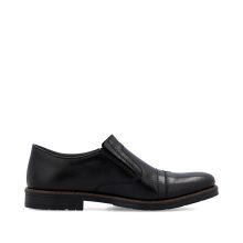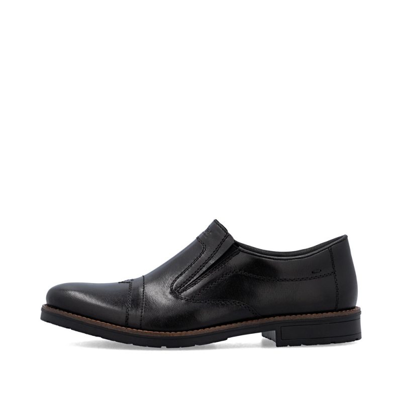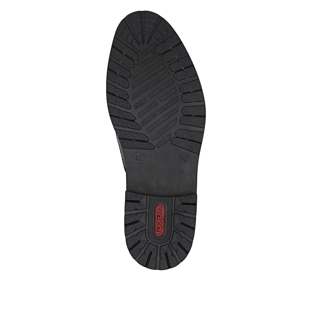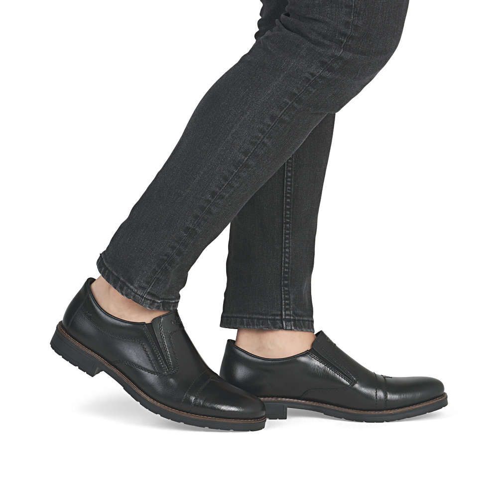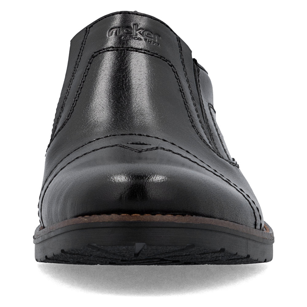 Ove muške mokasine marke RIEKER kombinuju tradicionalnu eleganciju sa modernim stilom. Gornji deo od crne kože upotpunjen je impresivnim linijama šavova i logotipom brenda postavljenim na unutrašnjem delu stopala, što ističe jedinstvenost ovog modela. Elastične trake sa strane unutrašnjeg dela stopala obezbeđuju lako obuvanje, a kožni uložak pruža udoban osećaj pri nošenju. Zahvaljujući ovim karakteristikama, mokasine garantuju osećaj udobnosti i stoga su odličan izbor za duge dane i aktivan način života.