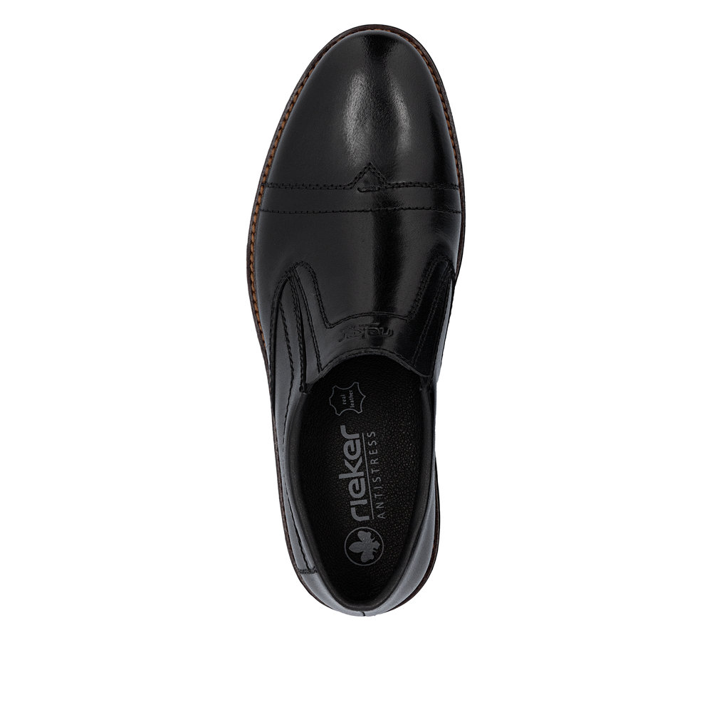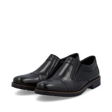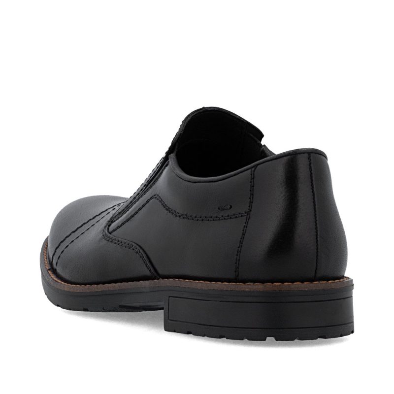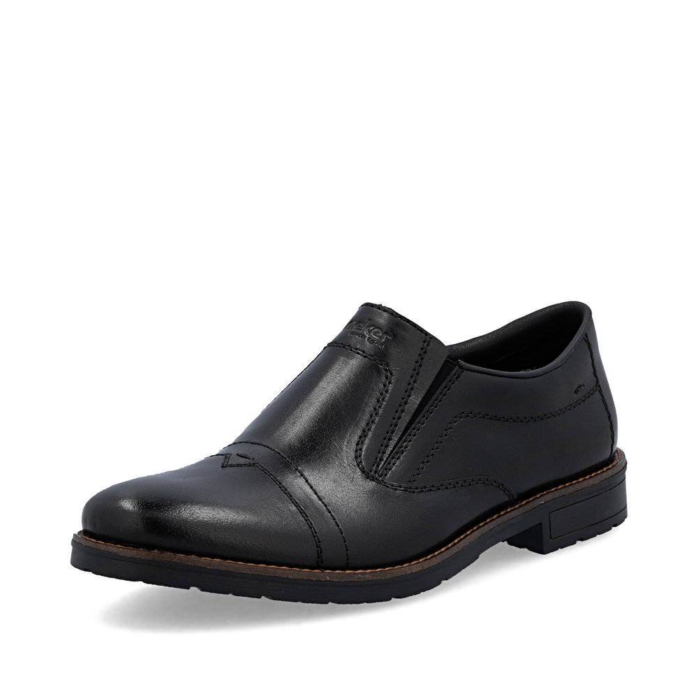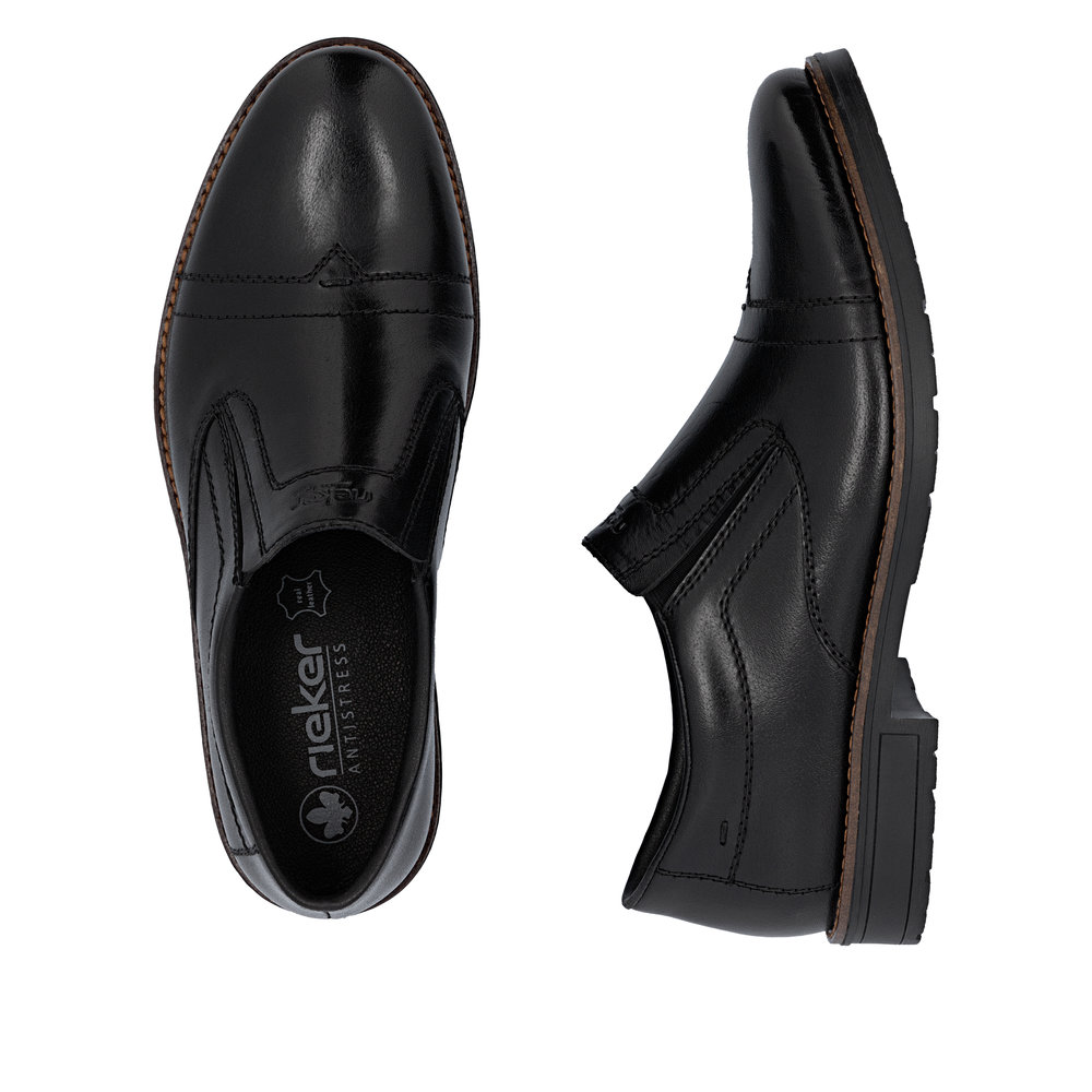 Ove muške mokasine marke RIEKER kombinuju tradicionalnu eleganciju sa modernim stilom. Gornji deo od crne kože upotpunjen je impresivnim linijama šavova i logotipom brenda postavljenim na unutrašnjem delu stopala, što ističe jedinstvenost ovog modela. Elastične trake sa strane unutrašnjeg dela stopala obezbeđuju lako obuvanje, a kožni uložak pruža udoban osećaj pri nošenju. Zahvaljujući ovim karakteristikama, mokasine garantuju osećaj udobnosti i stoga su odličan izbor za duge dane i aktivan način života.