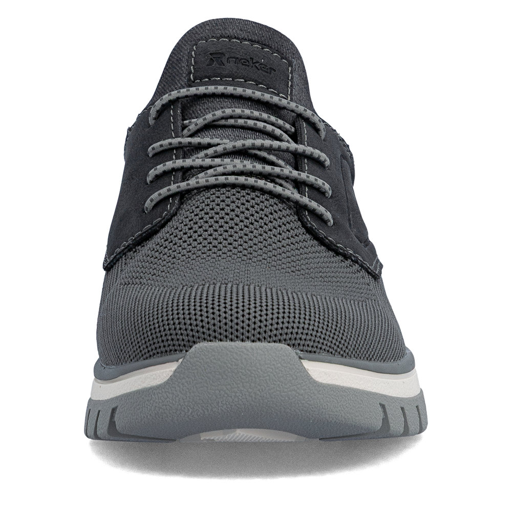 Ove muške RIEKER cipele su oličenje modernog stila u udobnom dizajnu koji će garantovati ne samo atraktivan izgled, već i maksimalnu udobnost tokom celog dana. Gornji deo je napravljen od harmonične kombinacije boja i struktura materijala, što cipelama daje originalan i moderan karakter. Svaki detalj je razrađen sa akcentom na stil – fino šavljenje, kultni logo brenda RIEKER i diskretni elementi stvaraju vizuelno atraktivnu celinu. Obuvanje cipela je brzo i jednostavno zahvaljujući tekstilnom materijalu gornjeg dela cipela, dok je elastična traka preko rista samo stvar dekoracije. Unutra se nalazi mekani uložak koji se može skinuti, koji pruža izuzetnu udobnost i osećaj mekoće prilikom koračenja. Pored toga, omogućava lako održavanje ili zamenu sopstvenim uloškom, čime se povećava praktičnost celog modela. Savršenu udobnost pružiće širi kroj cipela, stvarajući dovoljan prostor za stopalo. Sofisticirani đon sa efektom amortizacije garantovaće udobnost pri svakom koraku i istovremeno doprineće stilskom izgledu cipela. Lagana je, fleksibilna i prilagođena dinamičnom kretanju, što ove cipele čini idealnim pratiocem za celodnevno nošenje – bilo da idete u šetnju gradom, na posao ili za aktivnosti u slobodno vreme. Ove RIEKER cipele kombinuju udobnost, kvalitet i moderan izgled, što ih čini popularnim komadom u garderobi muškarca koji traži idealan balans između stila i udobnosti. Savršena interakcija modernog izgleda i maksimalne udobnosti zahvaljujući funkcionalnim tehnologijama su RIEKER sportske cipele.