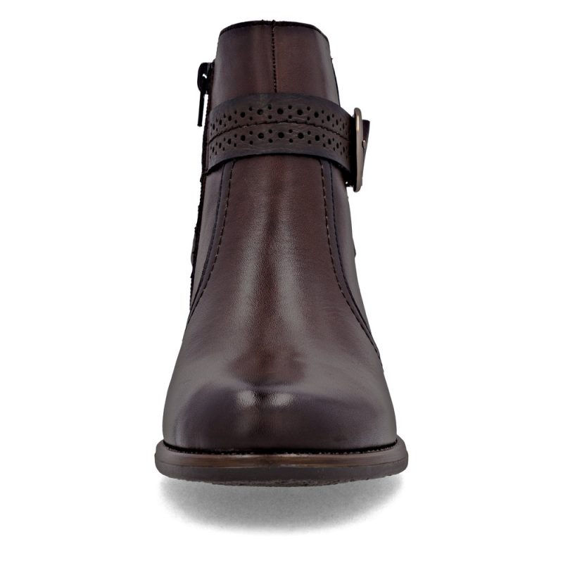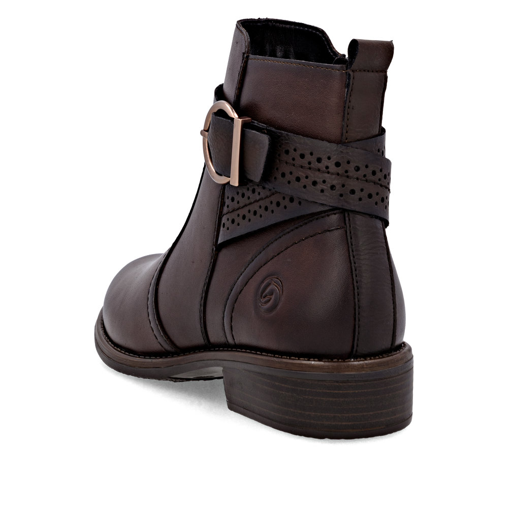 REMONTE cipele su viša linija brenda RIEKER, cipele karakteriše kvalitet korišćenih materijala. Ove elegantne RIEKER cipele do članka će impresionirati gornjim delom od smeđe kože upotpunjenim prepoznatljivom dekorativnom kopčom na kaišu oko članka, što modelu daje ženstven izgled u stilskom dizajnu. Unutrašnji rajsferšlus omogućava brzo i udobno obuvanje, kada se u njega uđe u uklonjivi mekani uložak, koji se svojim oblikom i materijalom savršeno prilagođava stopalu. Zahvaljujući visokokvalitetnoj izradi, promišljenim detaljima i modernom dizajnu, ove cipele će postati sastavni deo vaše svakodnevne odeće.