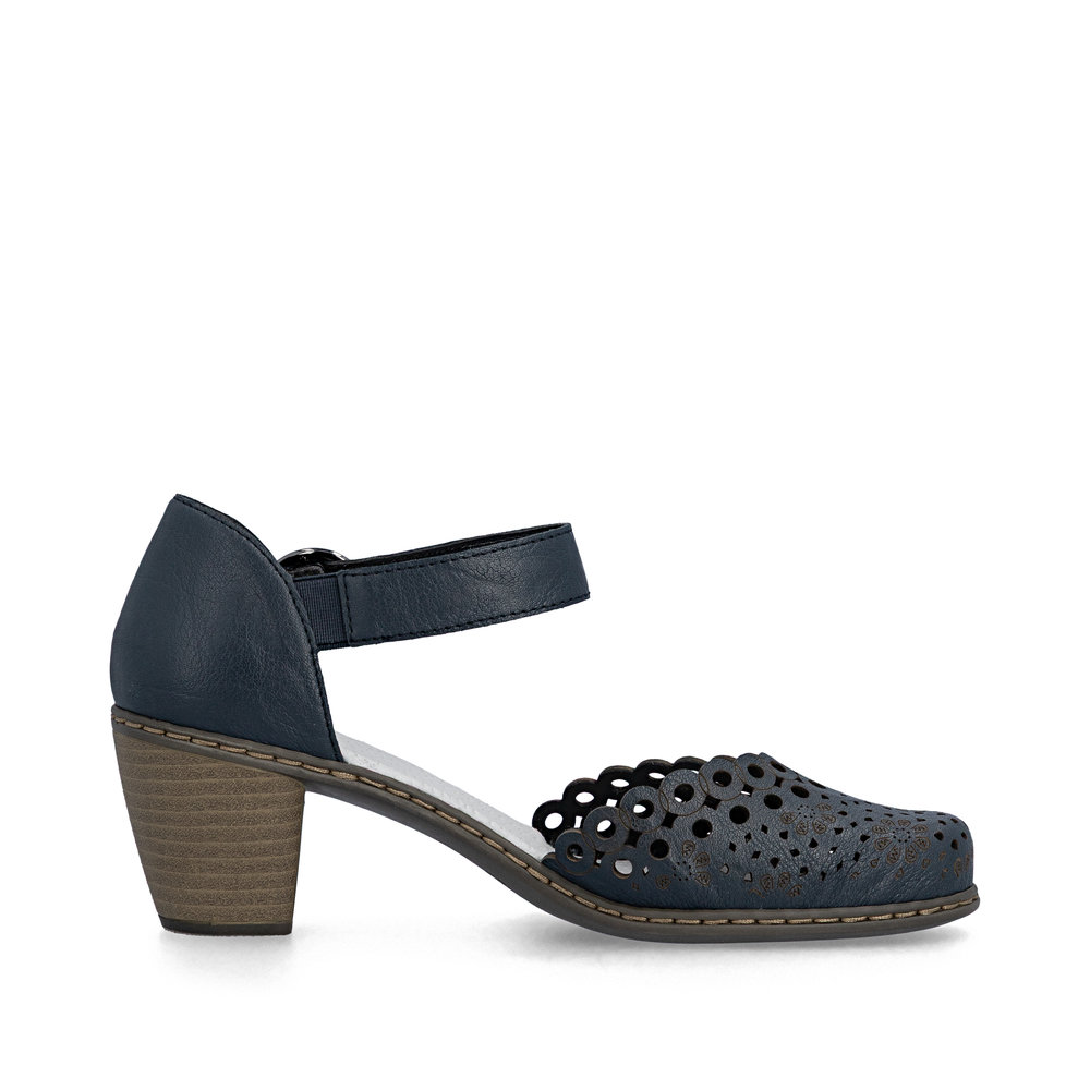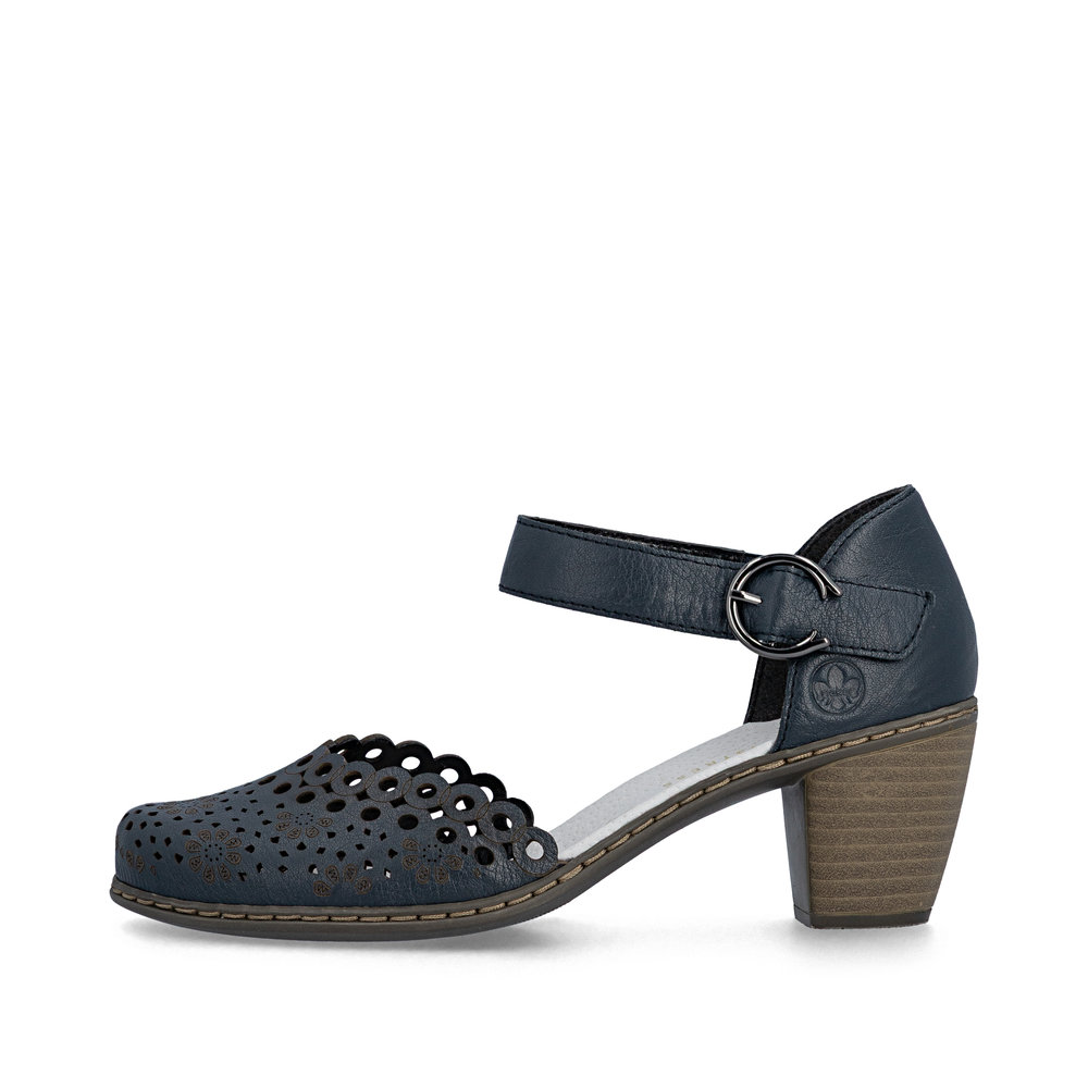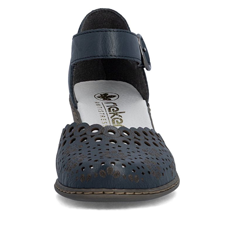 Drage dame, originalna obuća brenda RIEKER stvoriće savršen izgled za svaku od vas. Originalna dekoracija prednjeg dela upotpunjena perforiranom šarom stvara savršen izgled i impresionira svojom jedinstvenošću. Lako se stavlja uz kaiš oko gležnja sa kopčom i čičak trakom. Ženstveni šarm će podići petu i kada hodate, cenićete đon opremljen tehnologijom za apsorpciju udaraca prilikom hodanja. Modna elegancija u kombinaciji sa udobnošću pratiće vaše korake do posla i provođenja slobodnog vremena.