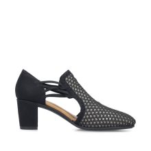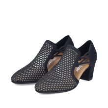 Ženske crne RIEKER cipele će vam odmah privući pažnju svojim jedinstvenim prednjim delom sa perforiranim uzorkom, obloženim mekom tkaninom, što donosi elegantan izgled i prijatan osećaj prilikom nošenja. Elastične bočne lastike olakšavaju obuvanje, nežno se prilagođavaju stopalu i pružaju stabilnost i udobnost pri svakom koraku. Udoban uložak u kombinaciji sa višom, širom potpeticom daje cipelama graciozan stav i eleganciju koja podvlači vašu ženstvenost bez kompromisa po pitanju udobnosti. Zahvaljujući jedinstvenom dizajnu, ove cipele će postati nezamenljiv komad vašeg garderobera – idealne za svakodnevno nošenje.