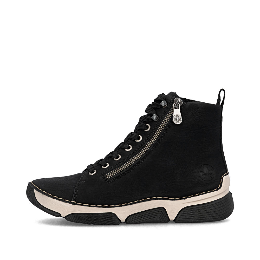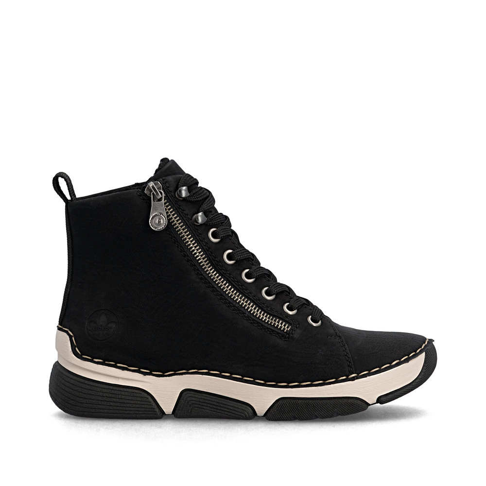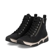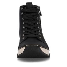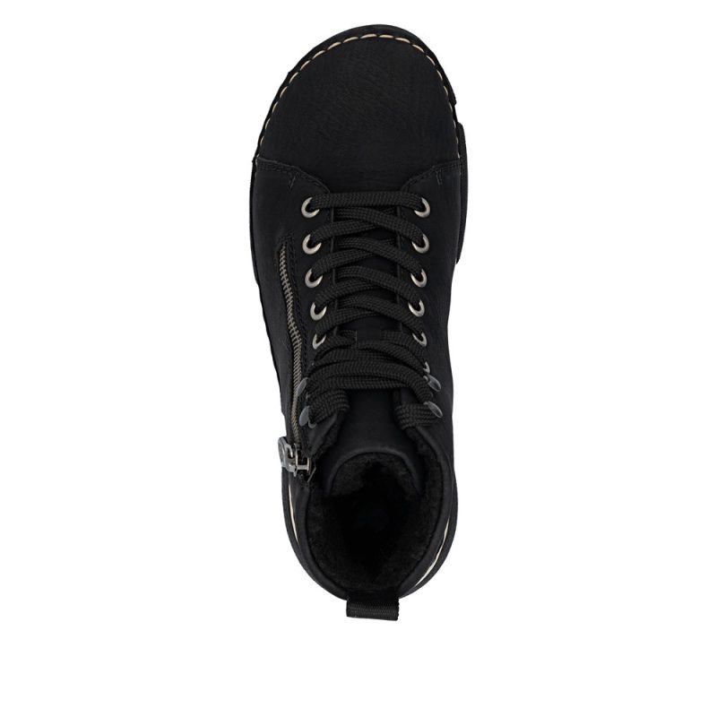 Ove RIEKER duboke cipele u crnoj boji kombinuju moderan dizajn sa praktičnošću, ukrašene finim detaljima poput prošivenih linija i diskretan logo brenda, stvarajući impresivan izgled. Vezanje zajedno sa patentnim zatvaračem koji se nalazi na unutrašnjem delu stopala osigurava lako obuvanje i savršeno se prilagođava obliku vašeg stopala. Prijatna tekstilna postava pruža udobnost, a njena izolacija pruža termičku udobnost u hladnim danima, dok đon koji apsorbuje udarce doprinosi stabilnosti i udobnosti pri hodanju. Ove cipele su odličan izbor za svakodnevno nošenje, idealne za žene koje preferiraju stilsku i funkcionalnu obuću.
