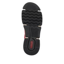 Ove duboke cipele marke Riker impresioniraće na prvi pogled svojim maštovitim dizajnom i naglaskom na udobnosti. Crveni gornji deo upotpunjen je kontrastnim šavovima, višebojnim detaljima i logom brenda, koji cipelama daju moderan i originalan dodir. Đon koji apsorbuje udarce u kombinaciji sa mekim uloškom obezbediće udobnost tokom celog dana, a zahvaljujući praktičnom kroju bez zakopčavanja, obuvanje je brzo i jednostavno. Idealan model za žene koje traže stilske i udobne cipele za svakodnevno nošenje – od gradskih šetnji do aktivnosti u slobodno vreme.