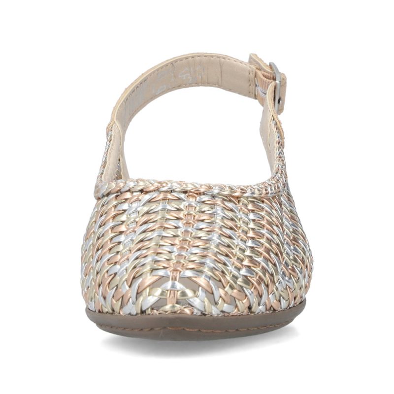 Riker polusandale sa potpeticom osvojiće vas na prvi pogled svojim prelepim odsjajima i efektno isprepletanim gornjim delom, koji deluje prozračno i veoma ženstveno istovremeno. Svaki detalj je osmišljen kako bi podvukao vaš stil i dodao suptilni dodir elegancije vašoj odeći. Zadnji kaiš sa podesivom kopčom se savršeno prilagođava vašem stopalu i daje vam samopouzdanje sa svakim korakom. Prijatan uložak će razmaziti vaša stopala udobnošću, dok će niska potpetica suptilno istaći šarm svake od vas. Ovo su cipele u kojima ćete se osećati samouvereno, ženstveno i izuzetno – od prvog koraka do poslednjeg plesa.