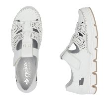 Doživite savršenu kombinaciju stila i udobnosti uz ove ležerne cipele marke RIEKER. Njihovo gornjište od kože upotpunjeno je perforacijama koje obezbeđuju prozračnost i svežinu u toplim danima, dok dekorativni uzorak i diskretan logo brenda daju modelu jedinstven karakter. Obuvanje je lako i udobno zahvaljujući čičak traci na ristu koja se prilagođava obliku vašeg stopala, a širi kožni uložak pruža udobnost tokom celog dana. Fleksibilan đon sa atraktivnim dizajnom apsorbuje udarce i dodaje stabilnost sa svakim korakom – bilo da provodite dan na poslu, šetate gradom ili sa porodicom. Bezvremenski dizajn i kvalitetna izrada čine ih idealnim dodatkom koji će vas svakodnevno pratiti sa gracioznošću i udobnošću.