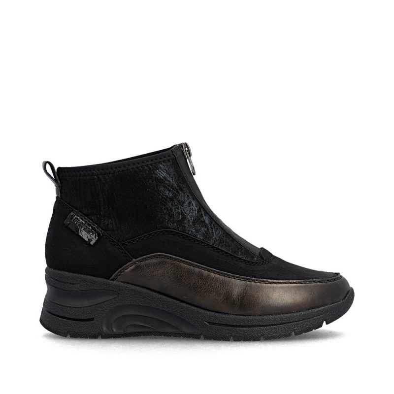 RIEKER-ove gležnjače će vam privući pažnju na prvi pogled zahvaljujući stilskoj kombinaciji materijala i suptilnih refleksija, što im daje izuzetan karakter. Praktični rajsferšlus koji se nalazi na ristu olakšava obuvanje, dok se mekani uložak koji se može skinuti prilagođava obliku vašeg stopala i obezbeđuje celodnevnu udobnost. Savršen dizajn ne samo da ima viši đon koji poboljšava celokupan izgled, već pruža i stabilnost i, zahvaljujući Antistres tehnologiji, efikasno apsorbuje udarce pri hodanju. Ovaj model je idealan izbor za žene koje žele da kombinuju trendovski dizajn sa maksimalnom udobnošću.