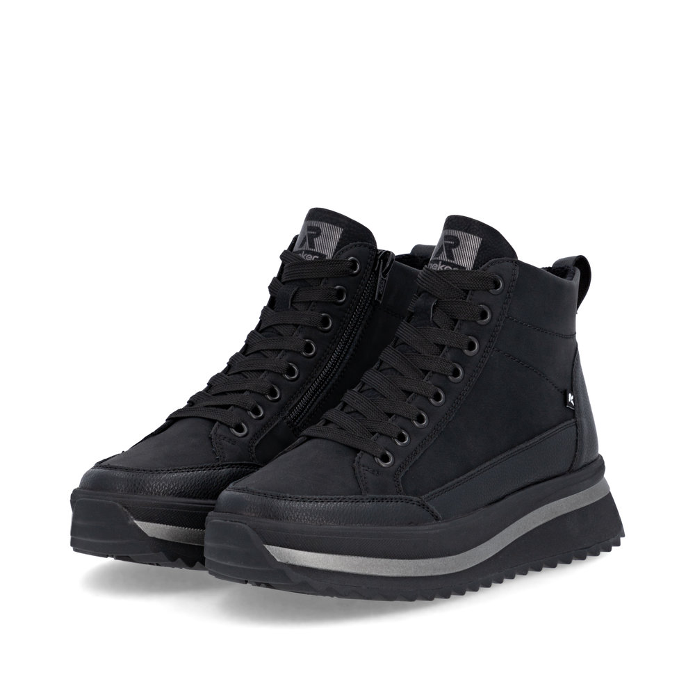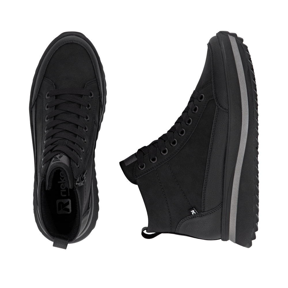 Moderni dizajn cipela RIEKER kombinuje stil sa maksimalnom udobnošću. Crni gornji deo je istaknut linijama šavova i logotipom brenda, što modelu daje originalan dodir i garantuje preciznu izradu. Pertle su upotpunjene praktičnim bočnim patentnim zatvaračem za lako obuvanje i savršeno prilagođavanje individualnim potrebama svakog od vas. Celodnevnu udobnost stvoriće uklonjivi i oblikovani uložak koji se savršeno prilagođava obliku stopala. Đon koji apsorbuje udarce obezbediće uživanje sa svakim korakom. Ove cipele do članka su odličan izbor za žene koje žele da izgledaju stilski, a da pritom ne ugrože udobnost. Savršena interakcija modernog izgleda i maksimalne udobnosti zahvaljujući funkcionalnim tehnologijama su cipele RIEKER Sport.