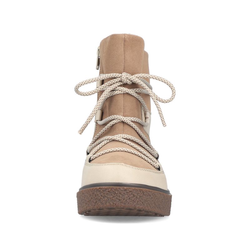 Ovaj model RIEKER gležnjača impresioniraće svojim modernim izgledom i funkcionalnim detaljima koje ćete ceniti tokom hladne sezone. Crni gornji deo sa zanimljivom kombinacijom materijala i struktura upotpunjen je čipkom u atraktivnim linijama. Unutrašnji rajsferšlus će obezbediti lako obuvanje, mekani, uklonjivi uložak i izolovana unutrašnjost koja će vas prijatno zagrejati pobrinuće se za vašu udobnost. Zahvaljujući funkcionalnoj membrani, vaša stopala će biti zaštićena od vlage i nepovoljnih vremenskih uslova. Imaćete udobnost sa svakim korakom zahvaljujući višem, stabilnom đonu koji apsorbuje udarce pri hodanju. Savršen model za žene koje traže pouzdane cipele za hladno vreme bez kompromisa po pitanju stila.
