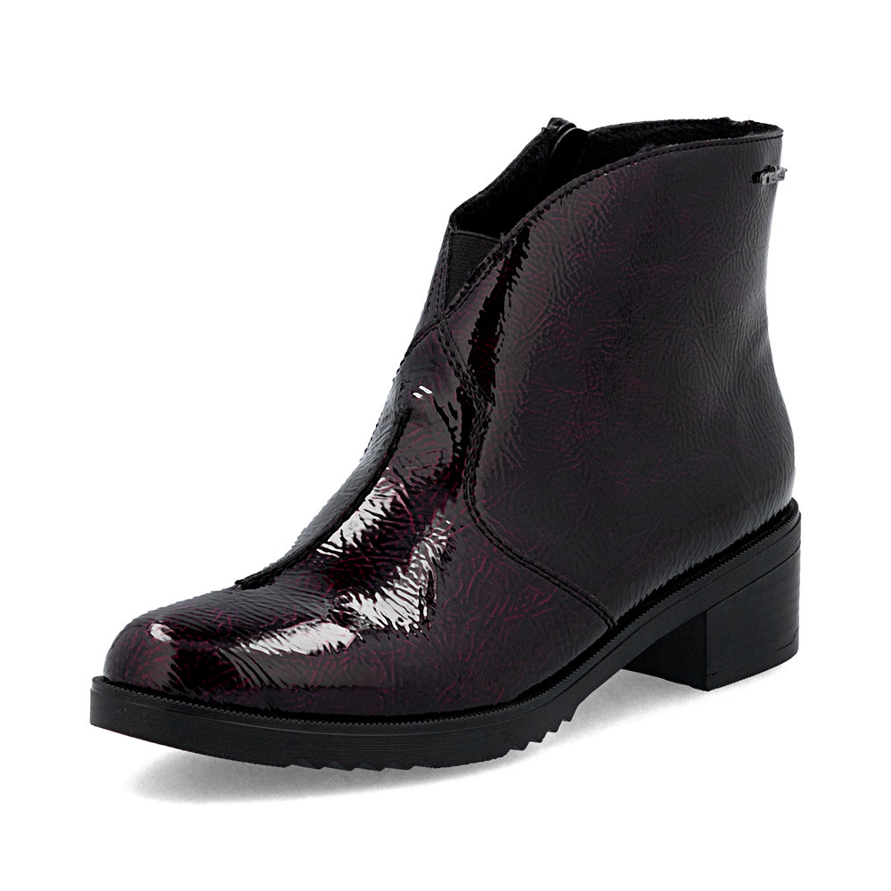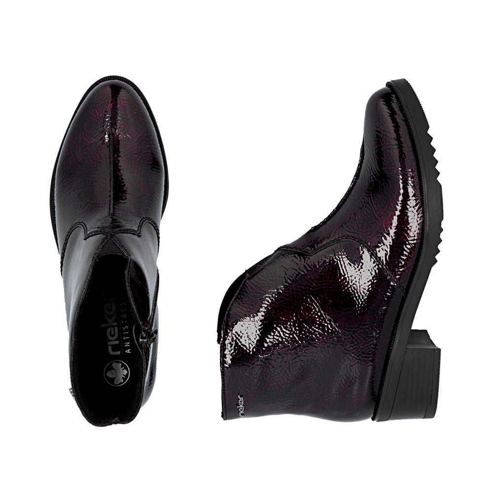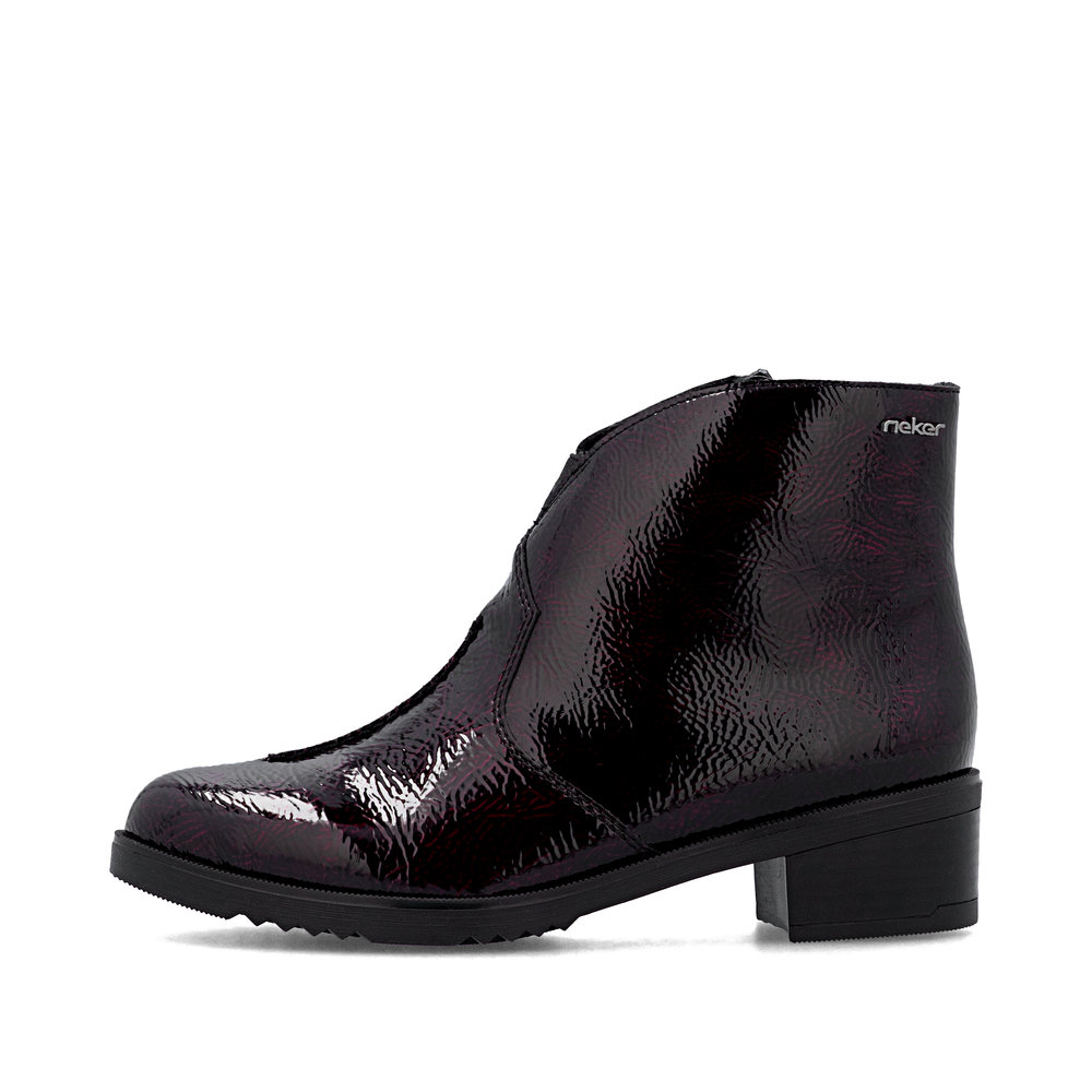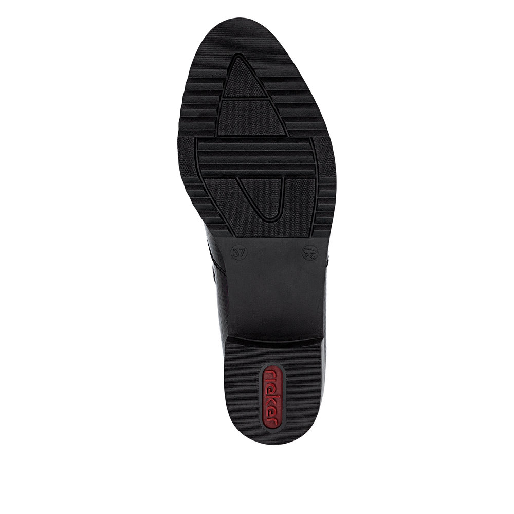 Ove RIEKER gležnjače privlače pažnju svojim prepoznatljivim sjajnim gornjim delom i promišljenim detaljima. Dekorativni šavovi i diskretan logo brenda daju modelu jedinstven karakter. Praktični bočni rajsferšlus omogućava brzo obuvanje, dok mekana tekstilna postava i đon koji apsorbuje udarce obezbeđuju udobnost tokom celog dana. Niska potpetica ističe elegantan izgled i čini ovaj model idealnim izborom za svakodnevno nošenje i stilske prilike.