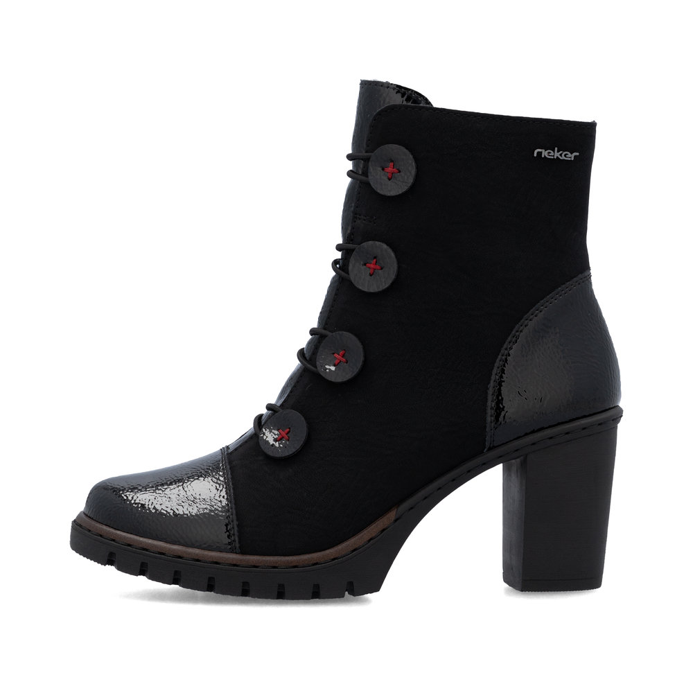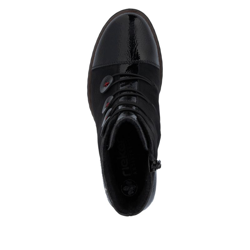 Nezaobilazni model RIEKER gležnjača, koji će impresionirati originalnom kombinacijom materijala i efektnim refleksijama na gornjem delu. Originalne aplikacije u predelu rista daju cipelama stilski dodir, dok bočni rajsferšlus osigurava lako obuvanje. Udobnost tokom nošenja podržava prijatna tekstilna postava i mekani uložak. Ženski šarm dodatno je naglašen elegantnom potpeticom, koja do savršenstva upotpunjuje celokupan izgled ovih cipela. Ovaj model stvara savršenu kombinaciju stilskog izgleda i udobnosti prilikom nošenja.