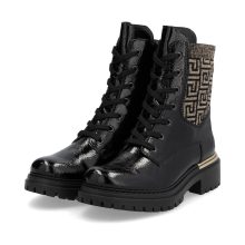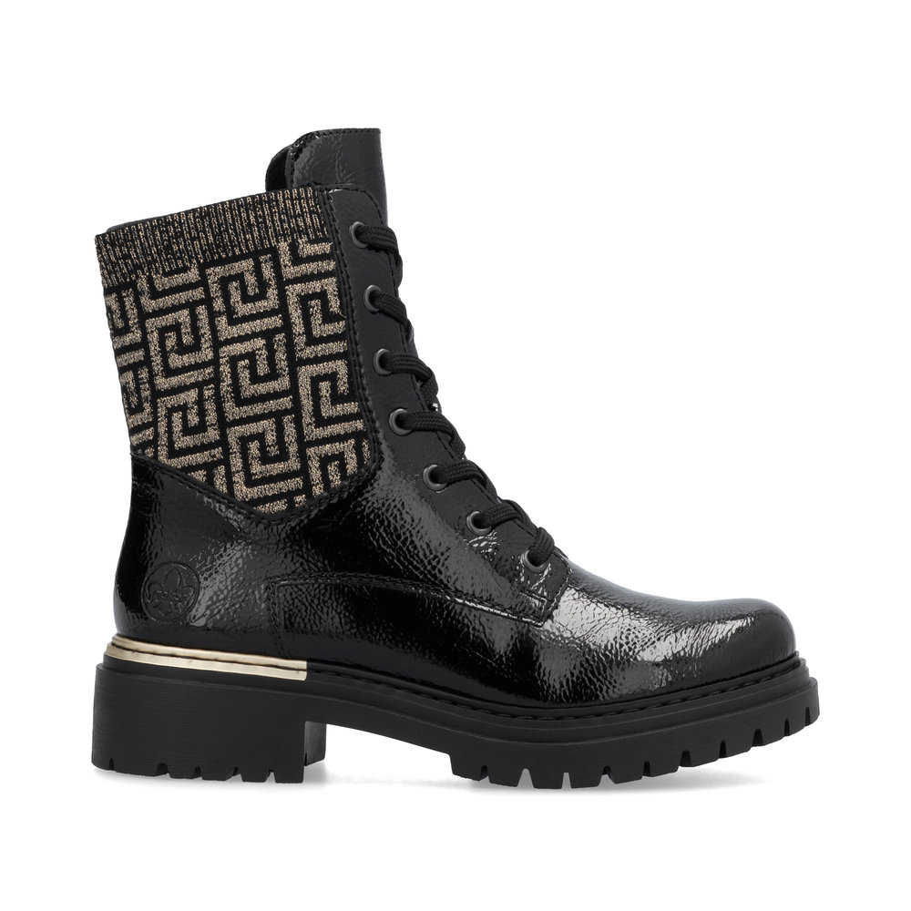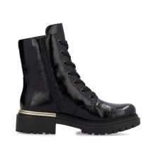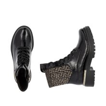 Ove sjajne crne čizme do članka marke Riker su idealan izbor za žene koje žele da spoje jedinstven izgled sa praktičnošću. Gornji deo sa šarom i fino šavovanje daju cipeli originalan izgled koji će vam privući pažnju na prvi pogled. Funkcionalni bočni rajsferšlus osigurava lako obuvanje, dok vezivanje omogućava precizno prilagođavanje stopalu. Kada ih obučete, pratiće vas mekani uložak i tekstilna postava koji nude udobnost čak i tokom celodnevnog nošenja. Ovaj stilski model je odličan dodatak i savršeno će upotpuniti i ležerne i elegantnije odevne kombinacije.