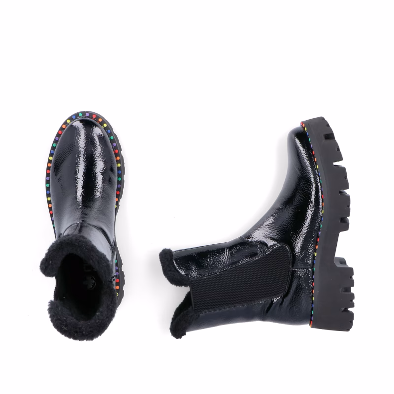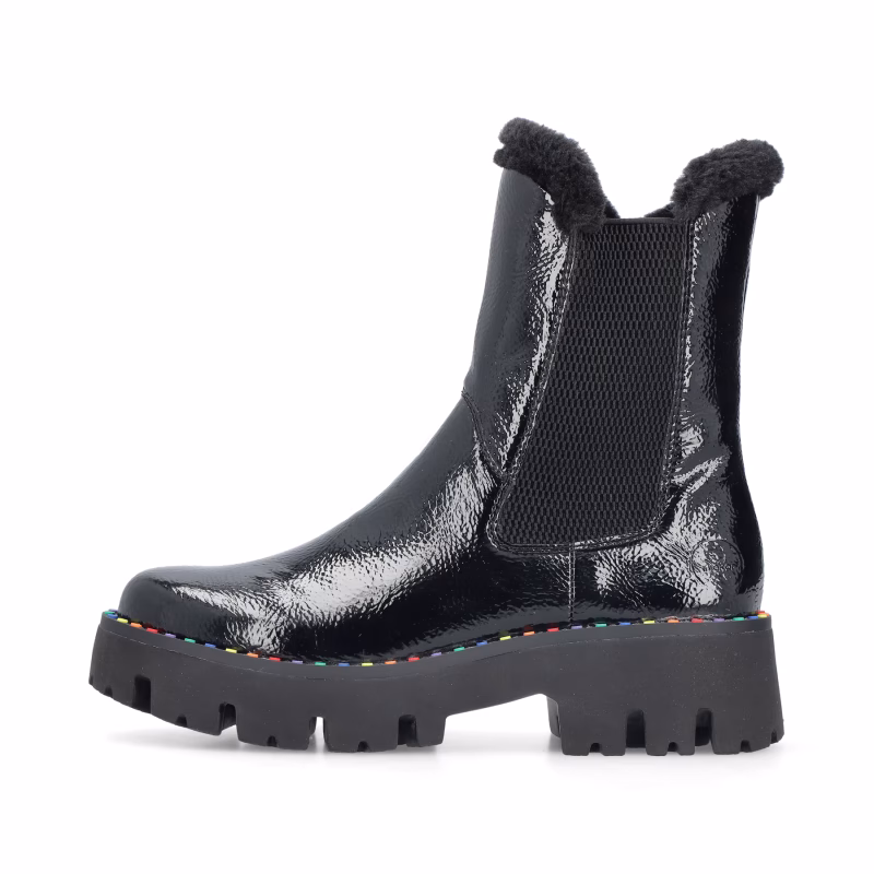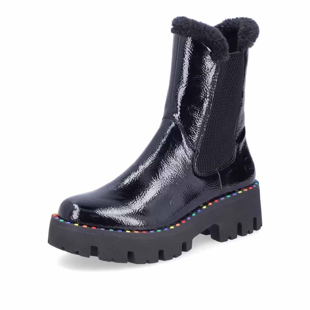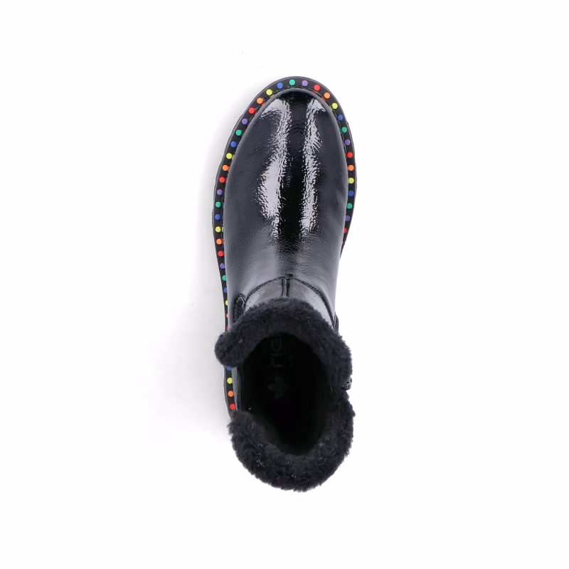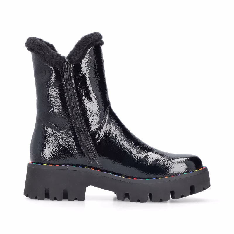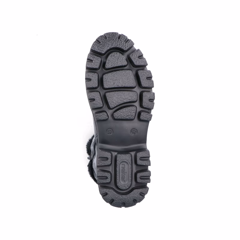 Jedinstvena obuća za hladne dane – to su RIEKER kratke čizme, koje će vam na prvi pogled privući pažnju sjajnim crnim gornjim delom u kombinaciji sa šarenim aplikacijama koje oblažu ivicu đona. Ovaj maštoviti detalj daje modelu originalan izgled i jedinstven stil. Bočna elastična traka zajedno sa praktičnim patentnim zatvaračem omogućava lako i brzo obuvanje, dok dominantni viši đon sa prepoznatljivim dezenom obezbeđuje stabilnost i udobnost tokom hodanja. Zahvaljujući tehnologiji apsorpcije udaraca, ove cipele su idealan pratilac za svakodnevno nošenje po hladnijem vremenu. Kombinacija stila, funkcionalnosti i udobnosti – ovo je cipela koja ne sme nedostajati u vašem zimskom garderoberu.