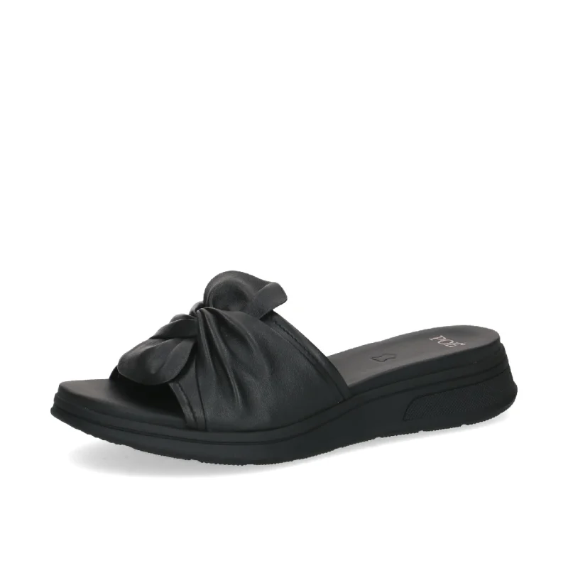 Rieker Revolution je nova linija moderne obuće sa velikim naglaskom na udobnosti i praktičnosti čak i tokom celodnevnog nošenja. Ove prelepe Rieker ženske papuče će vas oduševiti svojom jednostavnom elegancijom. Šira glatka traka ukrašena je velikom zlatnom aplikacijom. Sa našim papučama ćete sigurno impresionirati svoje kolege na poslu.