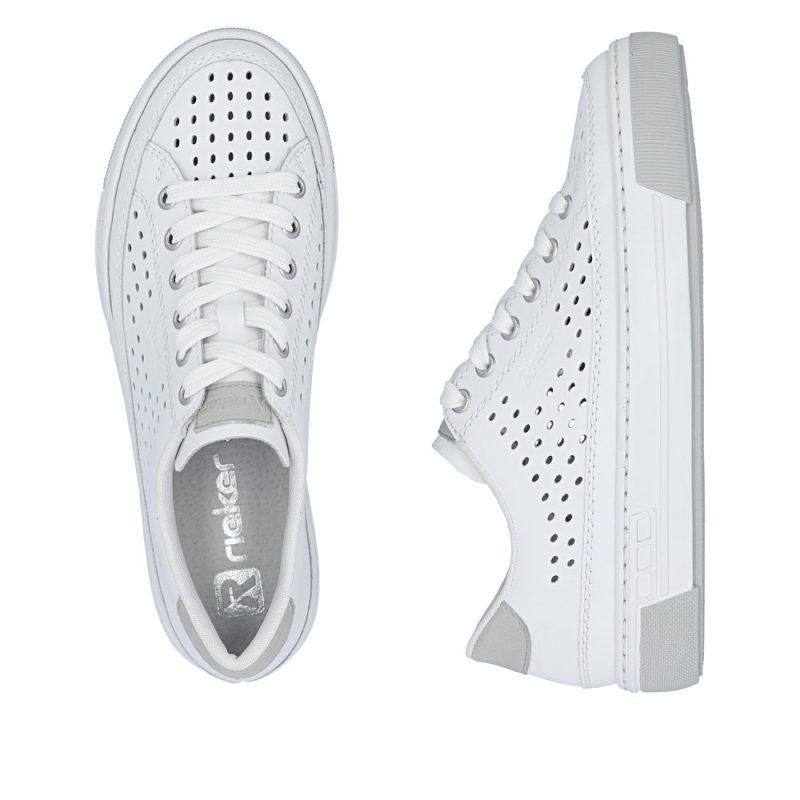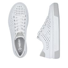 Ženske patike brenda RIEKER će na prvi pogled impresionirati visokokvalitetnim gornjim delom od kože sa diskretnim perforiranim uzorkom, koji cipelama daje prozračan i moderan izgled. Ovaj suptilni detalj ne samo da ističe stilski dizajn, već doprinosi i boljoj prozračnosti. Zahvaljujući klasičnom vezivanju, patike možete lako prilagoditi tačno svojim potrebama, što će osigurati bolje prianjanje stopalu i udobnije nošenje. Mekani kožni uložak, koji je prijatan na dodir i pruža stopalu potrebnu potporu, povećava udobnost pri nošenju. Viši, stabilni đon, koji efikasno apsorbuje udarce pri hodanju i pomaže u smanjenju umora nogu čak i pri dužem nošenju, takođe doprinosi ukupnoj udobnosti. Ovaj model je idealan izbor za svakodnevno nošenje – na posao, za šetnje po gradu i za aktivnosti u slobodno vreme.