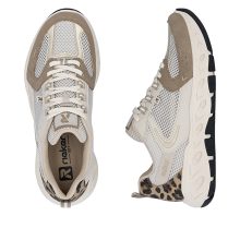 Ženske patike RIEKER u modernom dizajnu kombinuju čvrste delove sa stilskim mrežastim delovima koji obezbeđuju prozračnost čak i u vrelim danima. Zahvaljujući klasičnom vezivanju, savršeno pristaju na stopalo i omogućavaju individualno zatezanje. Unutra se nalazi memorijski uložak koji se prilagođava obliku stopala i pruža mekan, udoban korak. Celinu upotpunjuje viši dizajn đona koji dodaje stabilnost i moderan izgled – idealan izbor za svakodnevno nošenje. Savršena interakcija modernog izgleda i maksimalne udobnosti zahvaljujući funkcionalnim tehnologijama su RIEKER sportske cipele.